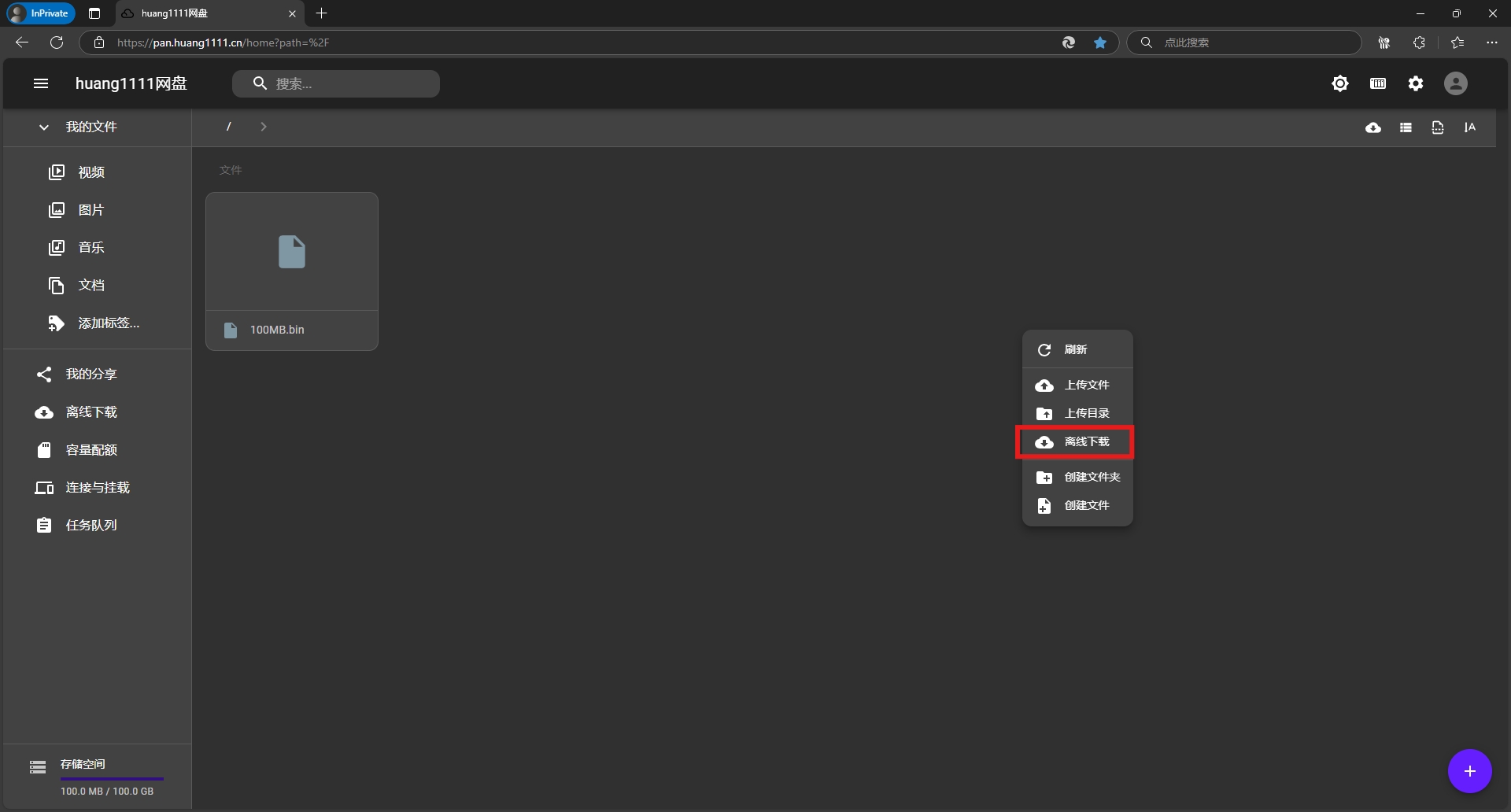 购买自建权益包后网盘会自动为账户开通离线下载功能,方便各位可以从支持直链的第三方网盘直接导入数据至huang1111网盘自建存储空间。